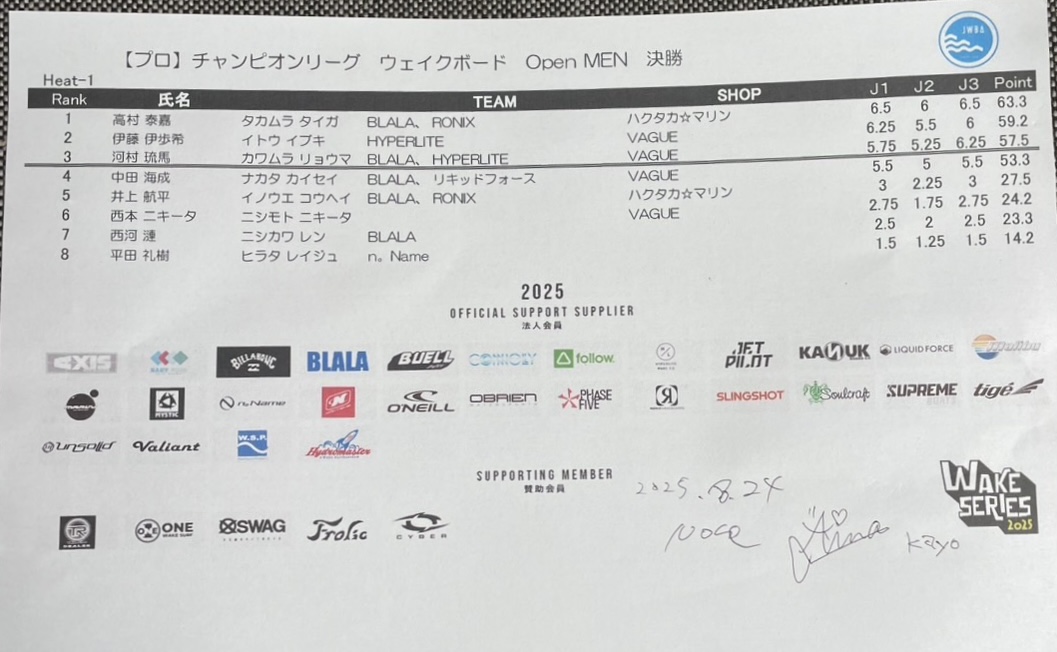 【リザルト3日目】ウェイクシリーズ第3戦 法皇湖大会~中四国地区大会併催〜
