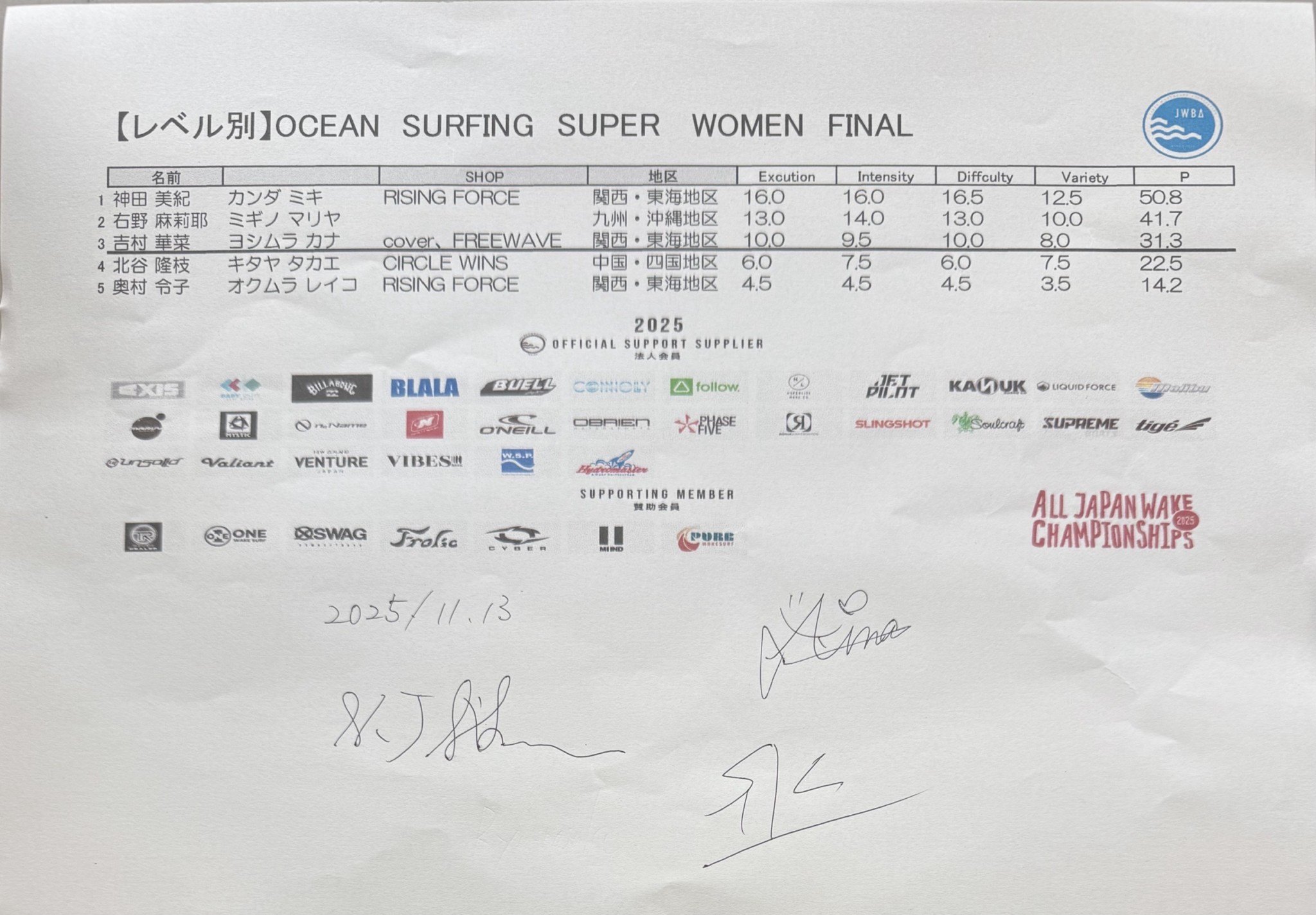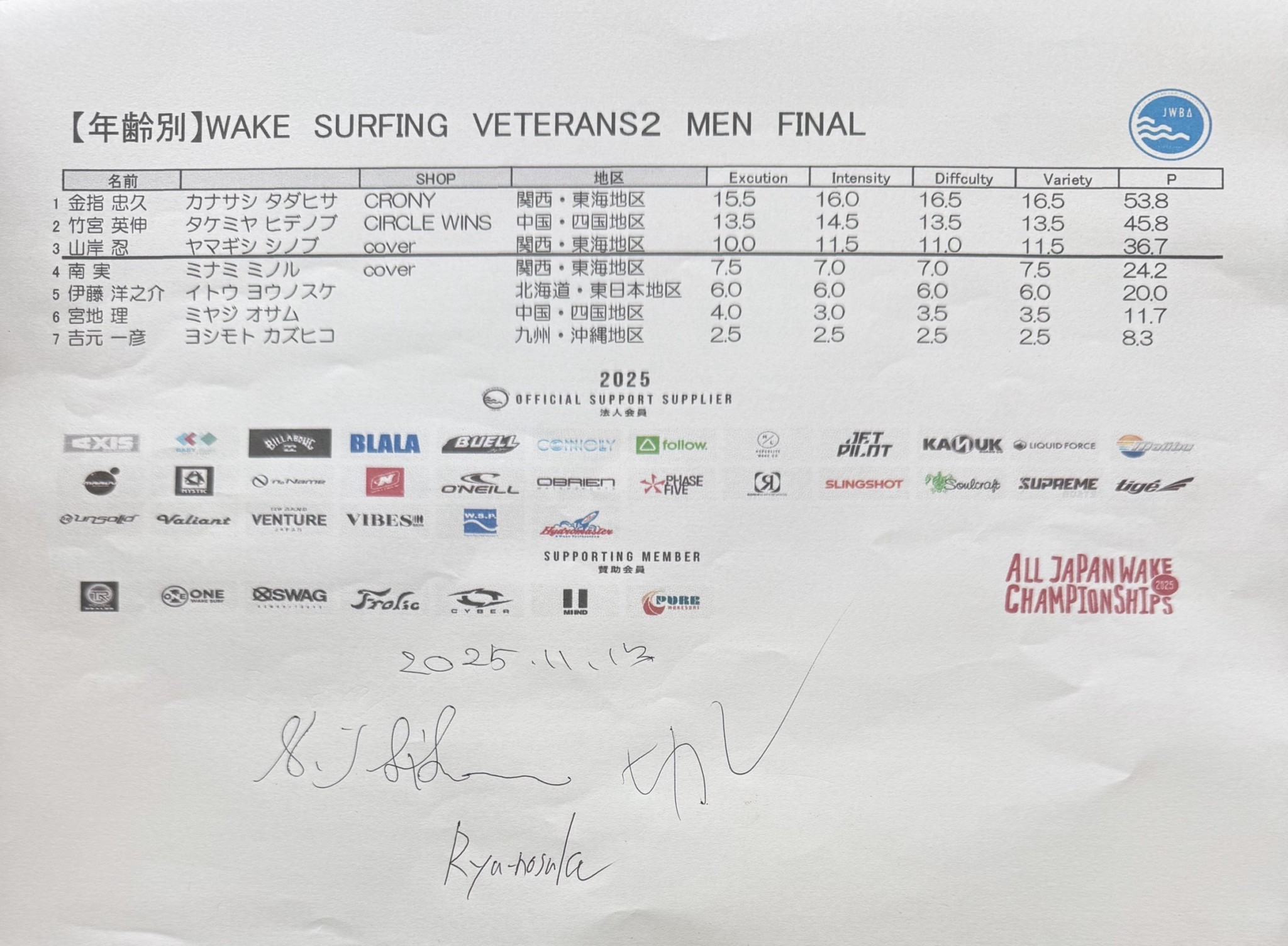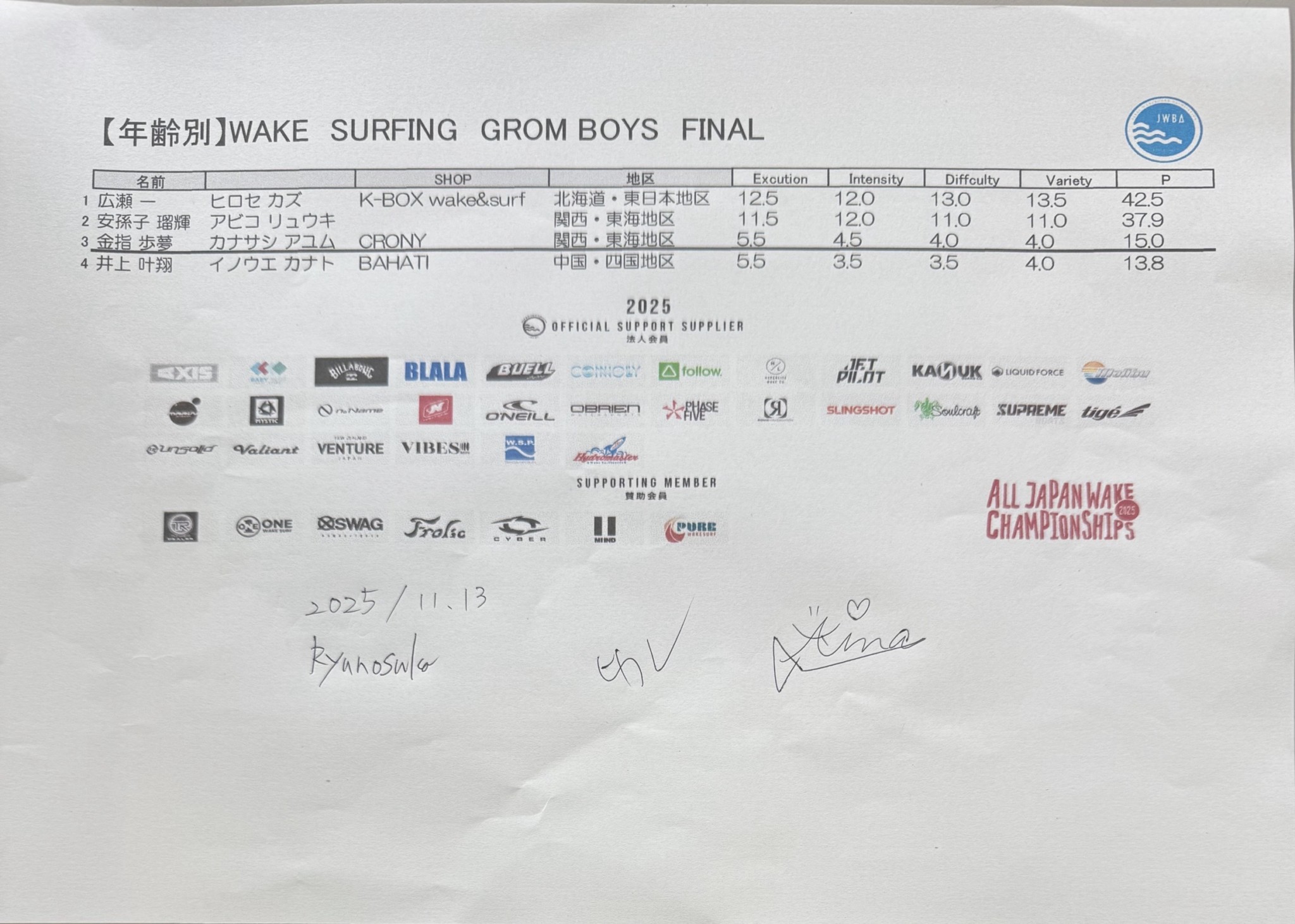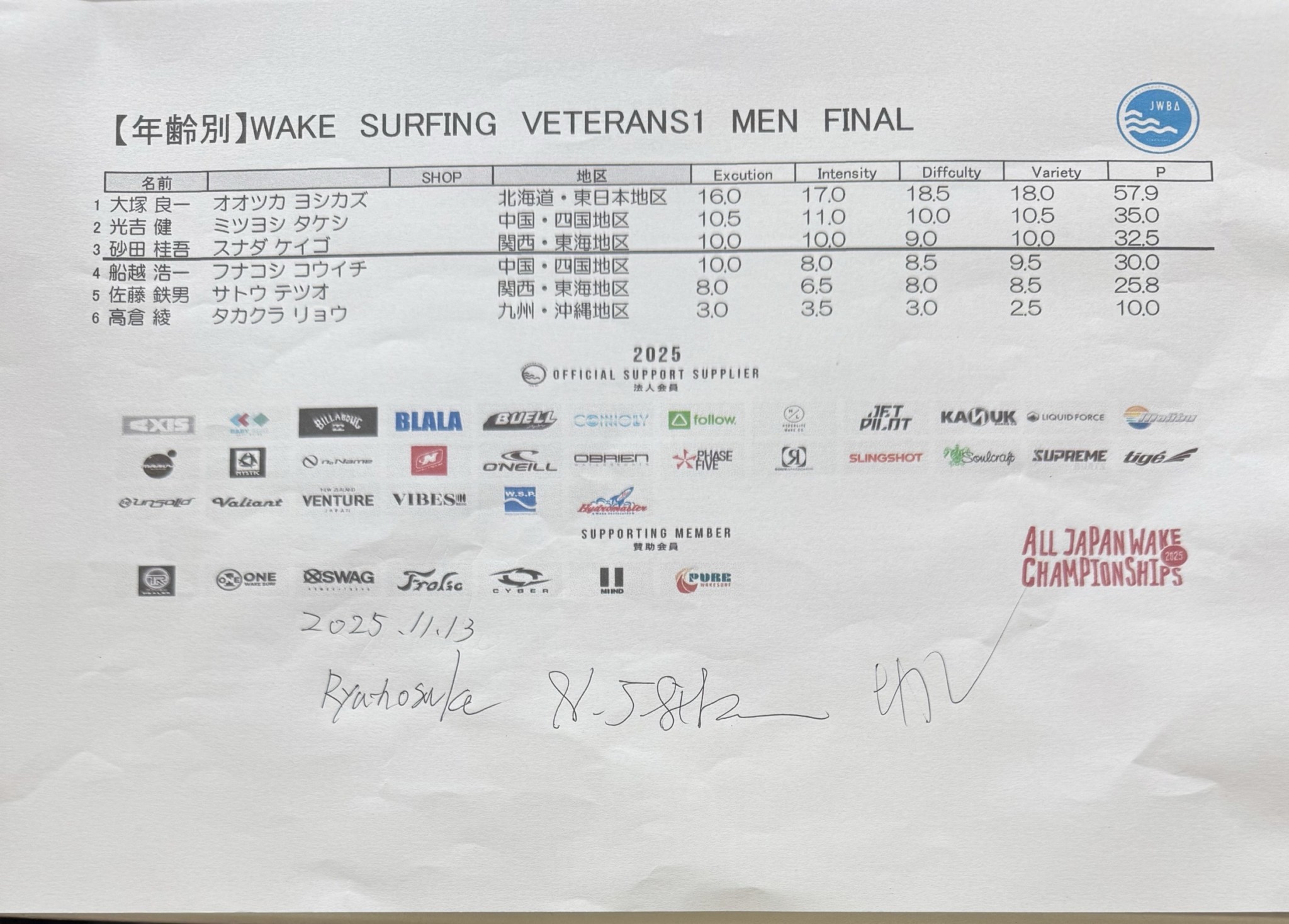 【リザルト1日目】文部科学大臣賞 第34回ウェイクボード・ウェイクサーフィン全日本選手権