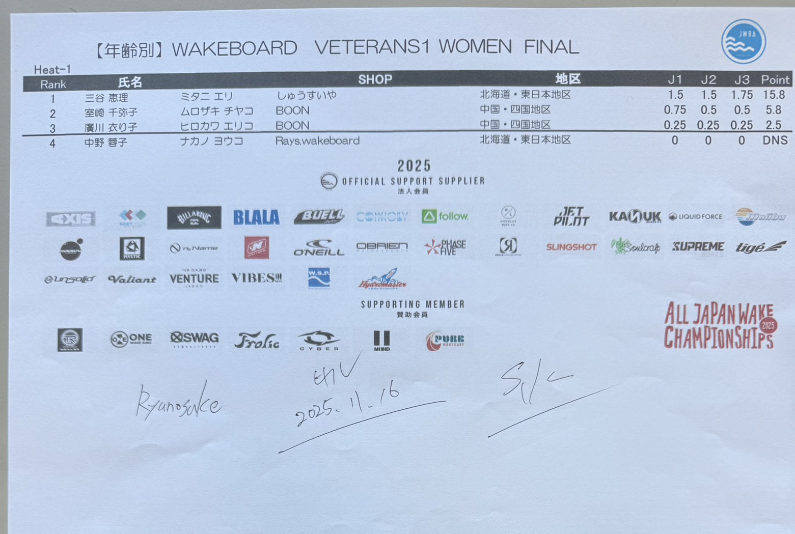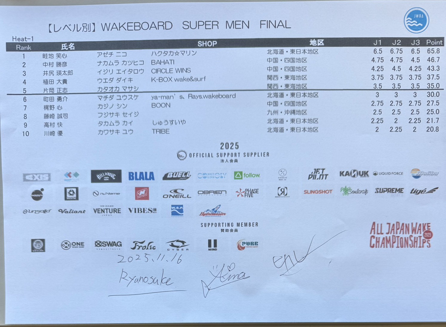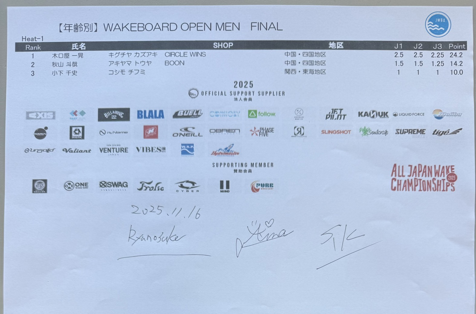 【リザルト4日目】文部科学大臣賞 第34回ウェイクボード・ウェイクサーフィン全日本選手権