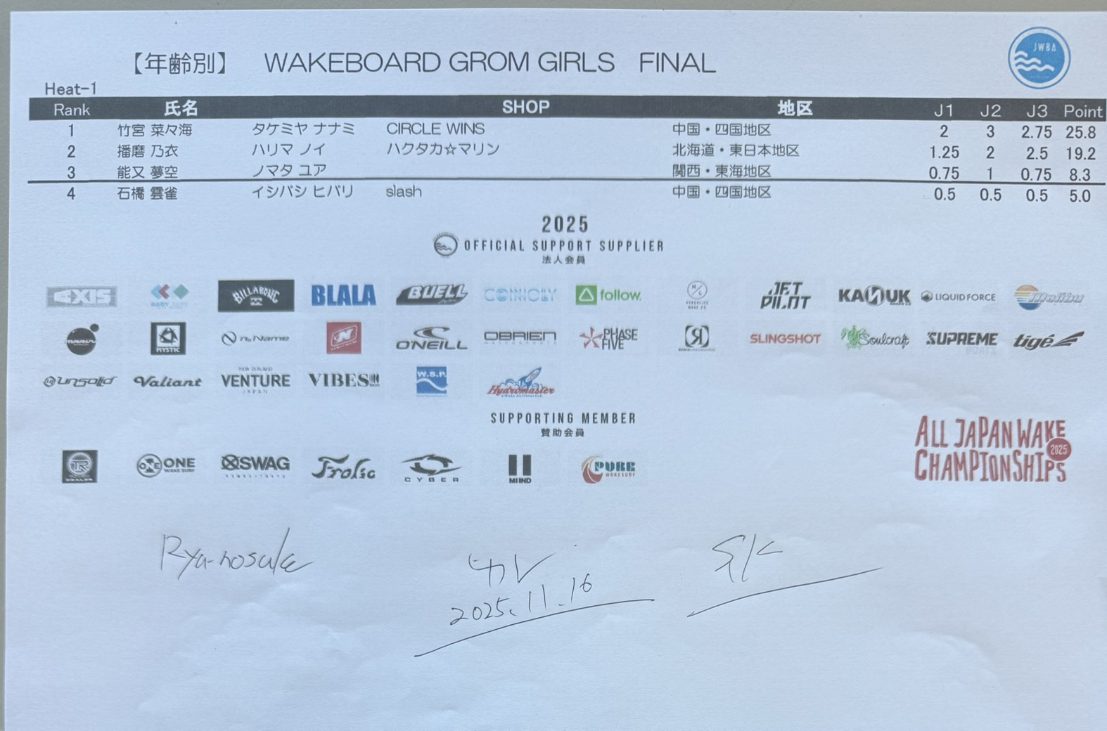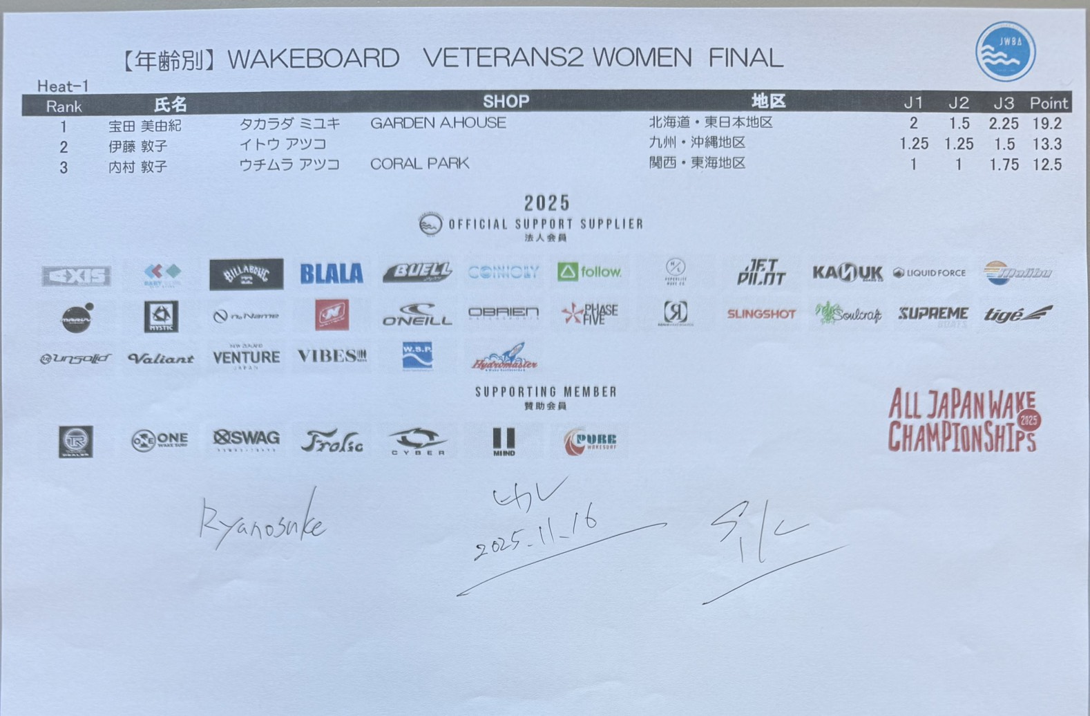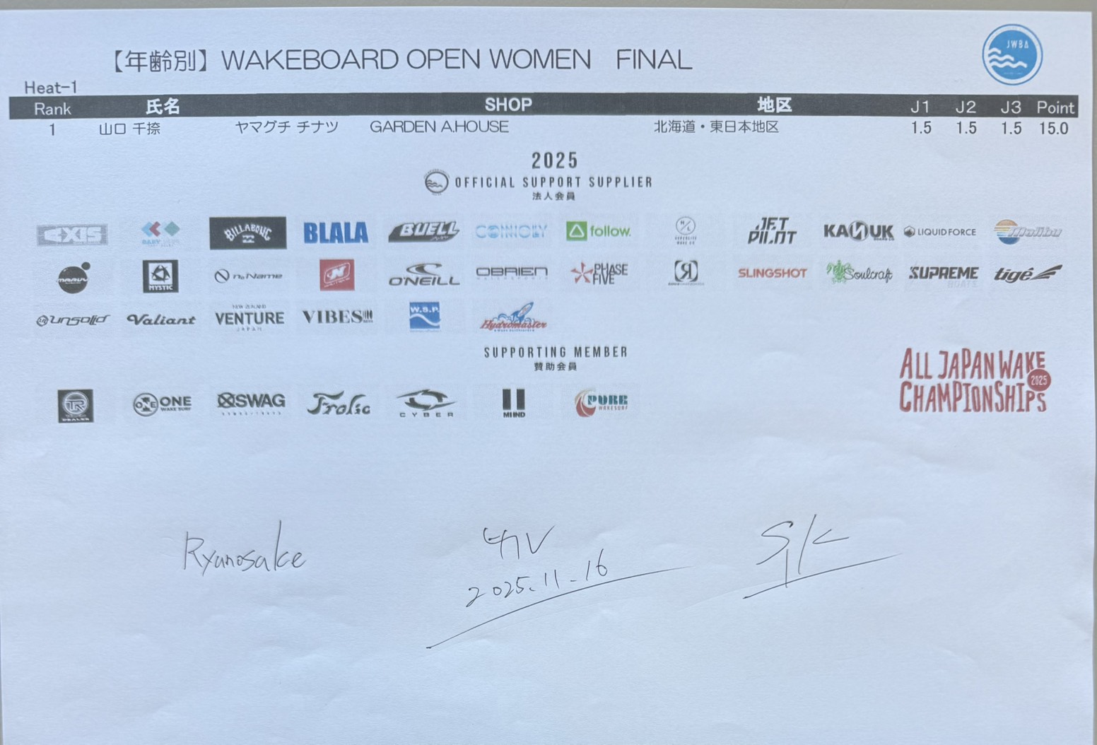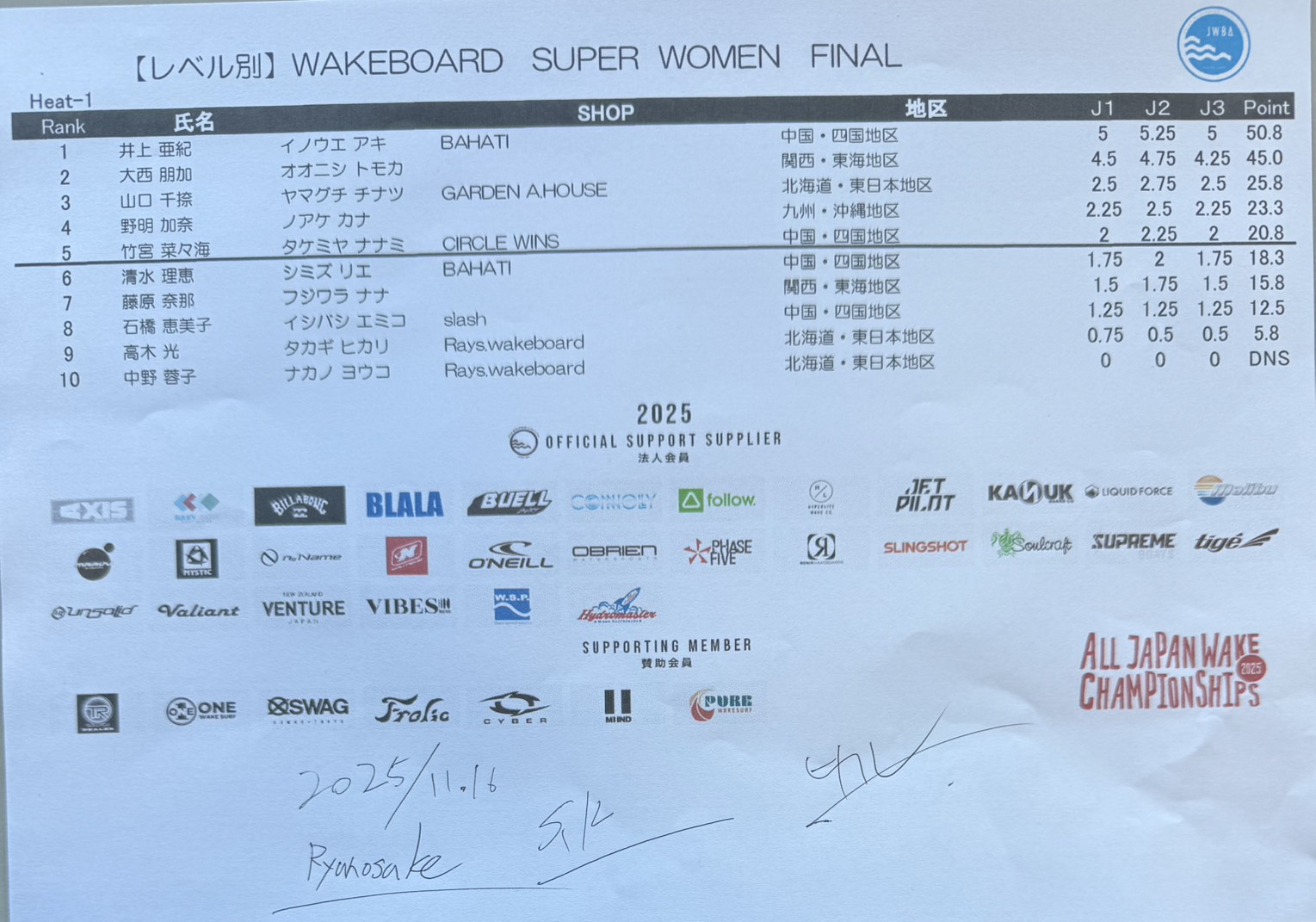 【リザルト4日目】文部科学大臣賞 第34回ウェイクボード・ウェイクサーフィン全日本選手権